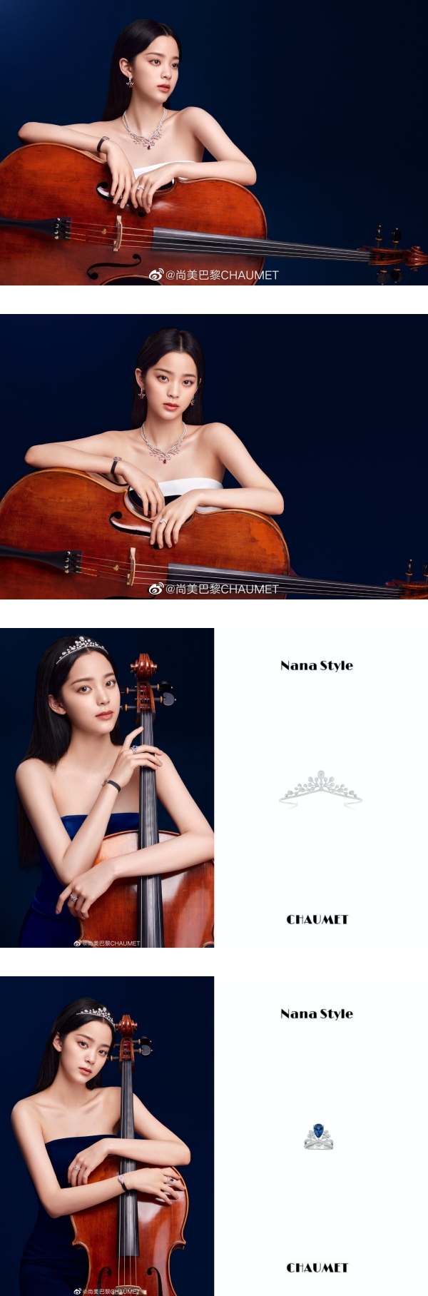 据悉,形象片中可以看到欧阳娜娜身穿深蓝色的连身裤装,头戴皇冠的坐在画面中间弹奏小提琴,整体画面看起来高贵优美。