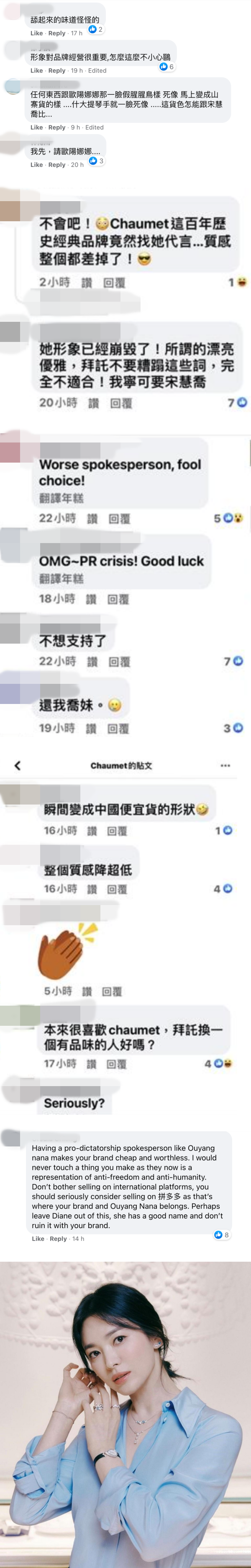 欧阳娜娜近期宣布接替宋慧乔,接下法国珠宝名牌“Chaumet” 的品牌大使,怎料遭到许多台湾网友们的强烈反弹,让品牌官方急忙把Facebook 上的帖文下架,掀起了热议。