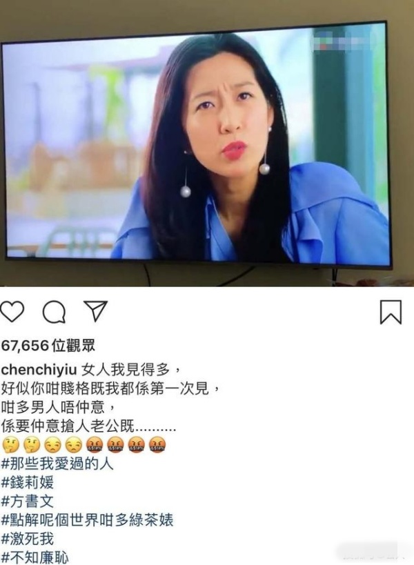 在王浩信去年的37岁生日这天,陈自瑶就在IG上贴出自己有份演出的《那些我爱过的人》中不满剧中绿茶婊抢人老公一事,她当时写下,“女人我见得多,好像你那么贱格我都是第一次见,那么多男人不喜欢,偏要抢人老公!”该帖文当时引起网友好奇,陈自瑶是否要隔空说些什么?