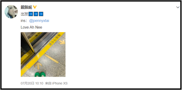另外,戴佩妮在20日于微博晒出一张写着中文的地铁站台照片,有传她已飞到中国并结束了隔离,从上海出发到江苏无锡录制节目。据网传消息,戴佩妮将担任音乐综艺《我的音乐你听吗》的导师,该节目正是从今天开始录制。