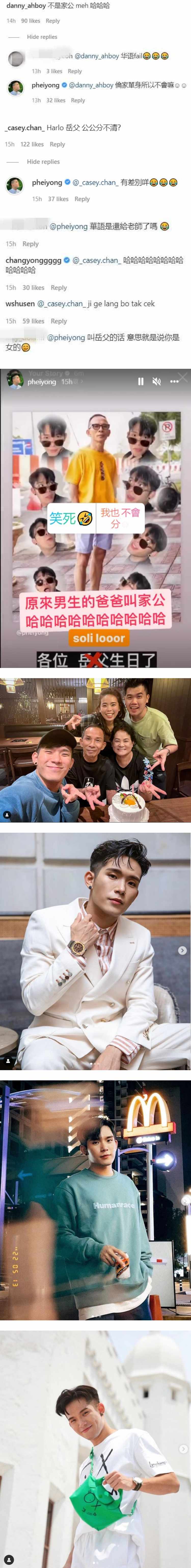 然而,“岳父”是指女方的父亲,“家公”才是男方父亲的称呼,培永明显搞错了称呼,引来不少好友留言嘲笑,包括Danny许佳麟、姐姐Casey都傻眼留言:“不是家公meh 哈哈哈”、“Harlo 岳父 公公分不清?”舒森更直接用福建话吐槽培永:“这个人没读书”。