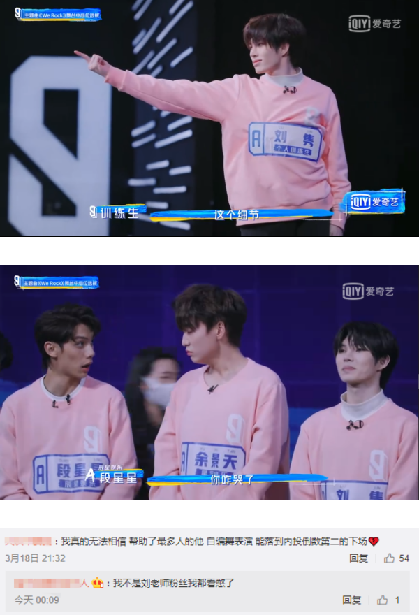 其中刘隽上场后,不少训练生都连番大赞:“他那个小动作太干净了”、“太强了,太强了”、“这个平衡感”、“他的手势会打结吗”、“编舞天花板”。