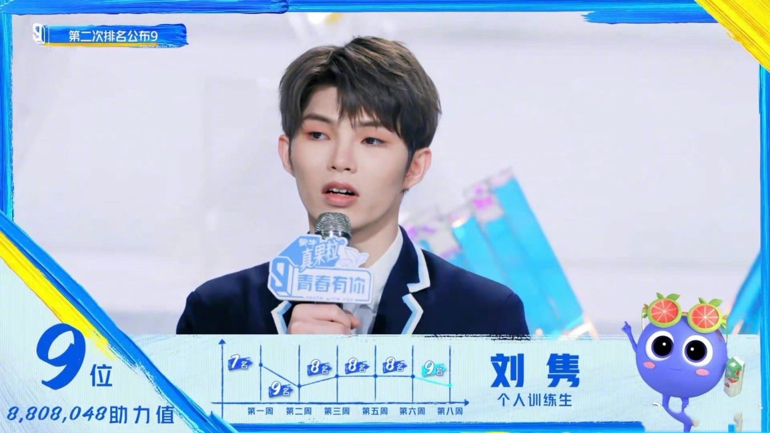 刘隽在发表感言时,对于自己的排名表示:“虽然我现在留下来了,但是我感觉我的位置就是⋯一直在原地踏步一样,一直在第8名第9名左右,所以我不会放弃,我会一直努力的提升自己各方面的努力。然后让所有喜欢我的人、支持我的人,看到我越来越好的样子,我相信我不会止步于此,然后也会让你们感到骄傲的。”