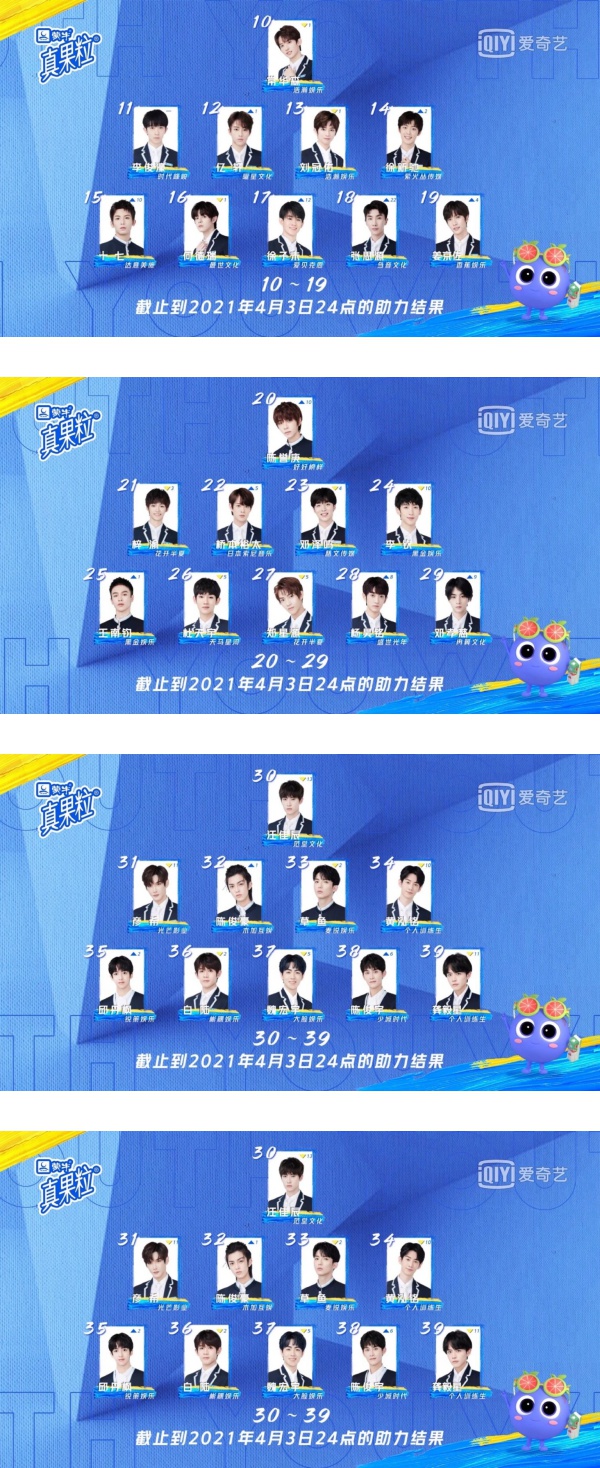 第二次顺位排名大洗牌,出道圈的9名训练生依序是余景天、罗一舟、孙亦航、连淮伟、唐九洲、孙滢皓、段星星、梁森、刘隽,卡在第10名的训练生则是常华森。