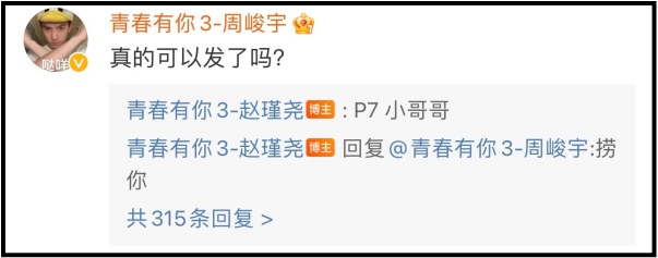 早前,《青春有你3》的周峻宇曾询问赵瑾尧:“真的可以发了吗?”因此选手们不更新照片或毫无动静,可能是收到节目组或公司要求。
