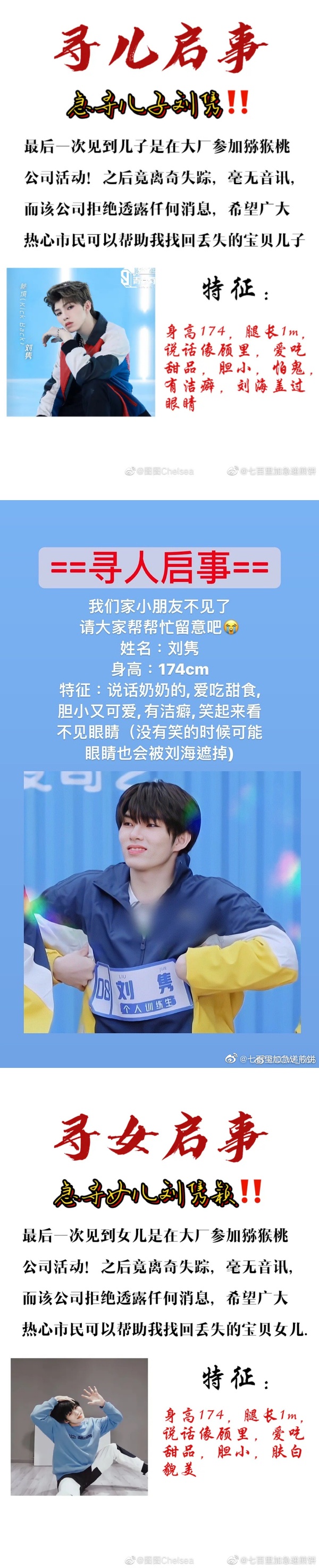 粉丝们写下训练生的各个特征,呼吁外界帮忙找“儿子”:“如有好心人见到请联系我一下,谢谢”、“我家小朋友不见了,请大家帮忙留意吧”;一起来看看,这些心酸又好笑的“寻人启事”吧!