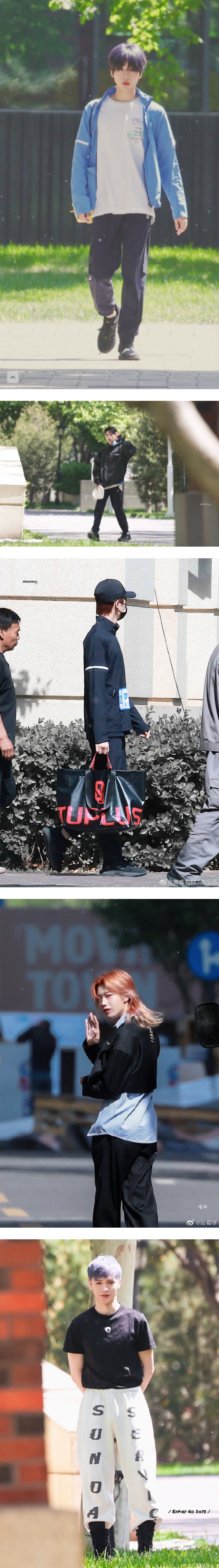 其中,刘隽新染的紫发在阳光的照耀下看起来非常亮眼,完全是充满了男团成员的气质。