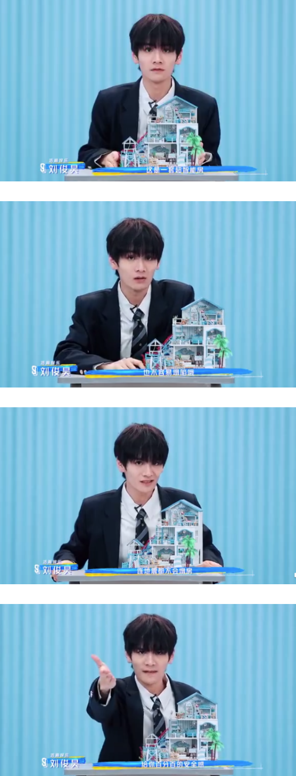刘俊昊介绍自己的楼盘,透露特点是有超标准的建筑要求:“十级抗震设计、地基坚固、不易塌陷,连地震都不会塌房!”他欢迎粉丝入住这栋名为“刘俊昊”的家,保证给足百分百的安全感。