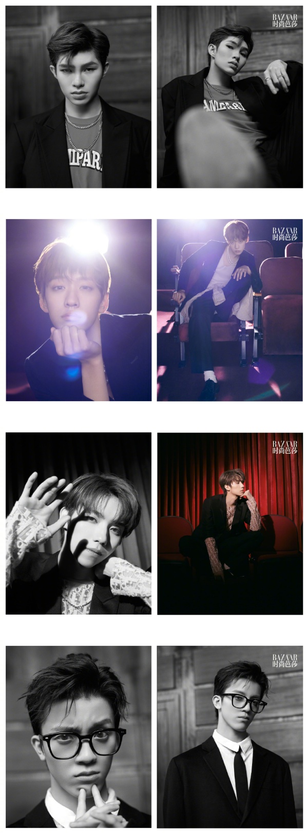 16日午间,时尚芭莎官方微博发放了前9名训练生的彩色和黑白杂志封面照,9位成员在电影院里摆出各种诱人姿势拍照。其中,胆子小的刘隽此次对着镜头耍狠,敲他这眼神犹如坏小孩一样,超杀的。