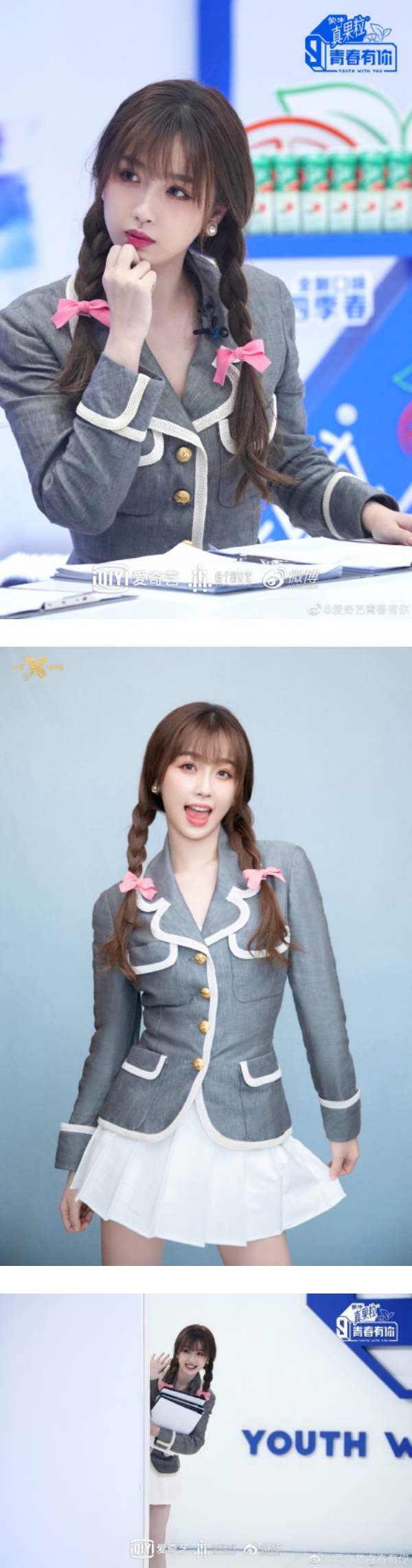 另外,虞书欣身穿制服录节目的照片也曝光了!助教专属制服是一套白色裙子,外搭灰色外套,看起来可爱以及充满活力!