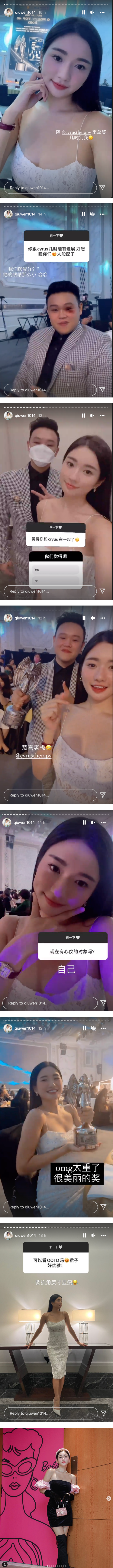 秋雯13日与经纪人Cyrus 出席企业晚宴,闲暇时间在Instagram Story 上开启了QnA 环节时被问到“你跟Cyrus几时能有进展,好想磕你们,太般配了”,她则幽默回应:“我们般配咩,他眼睛那么小”。