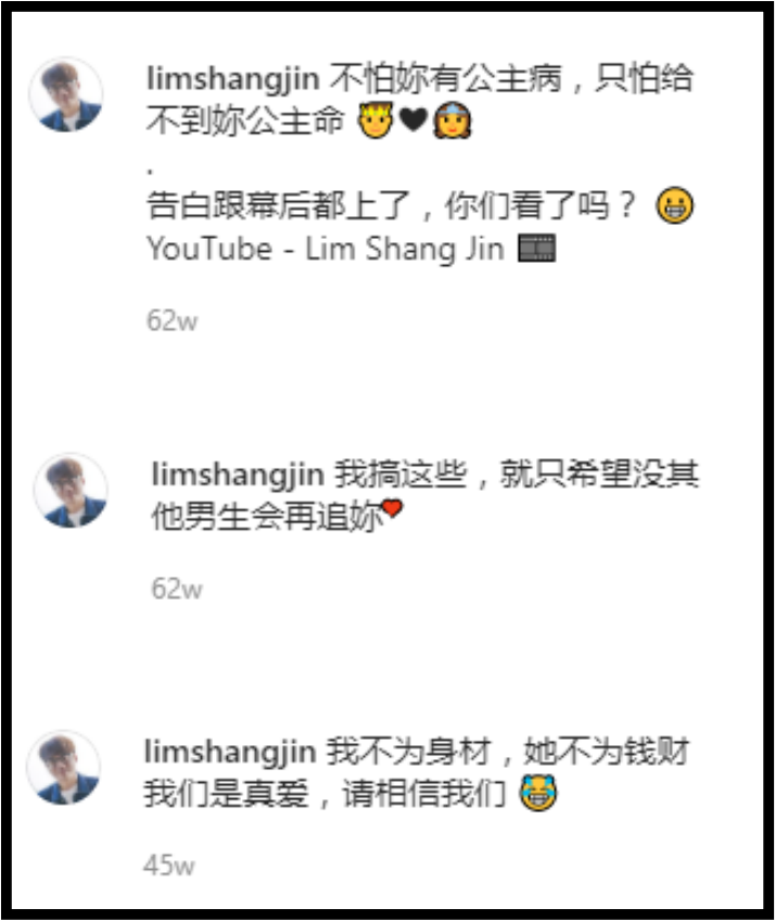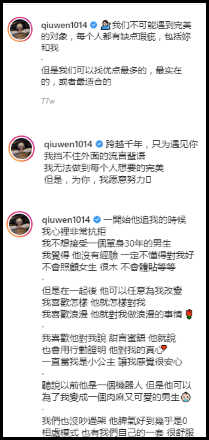 秋雯、林尚进往年在IG晒出合照时,不时都会写上甜蜜的情话,如今看来让CP粉有些不胜唏嘘。