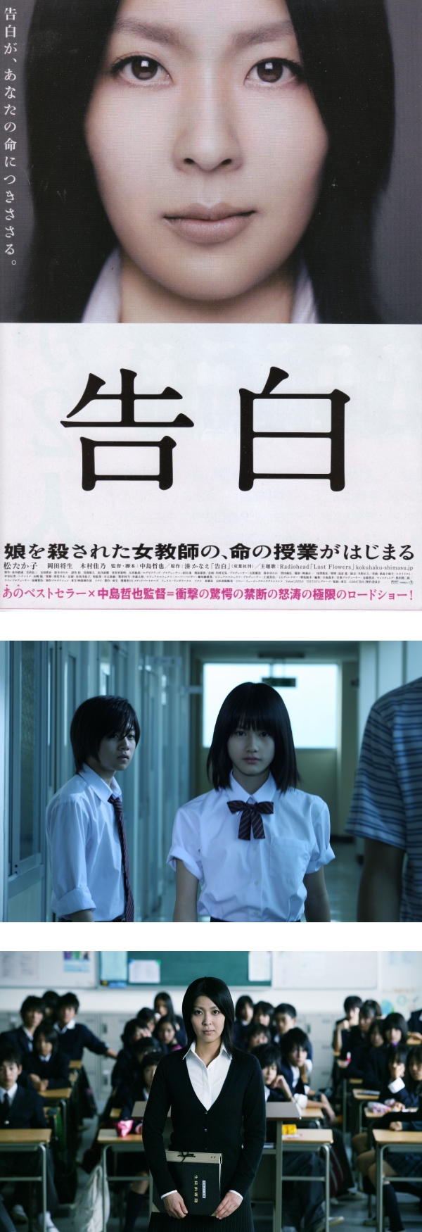 这部名字看起来很不黑暗的《告白》讲诉了一个高中老师复仇的故事,她认为自己的学生害死自己年仅四岁的女儿,并且因法律的保护继续逍遥法外,因此她运用自己的方式来让这些霸凌者及加害者得到了因有的惩罚,故事的题材和角色在电影中都非常大胆的呈现。