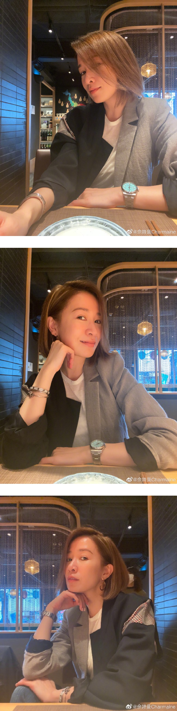 佘诗曼近日在微博晒出一系列美照,手上戴着的钻石手环、手表格外抢镜。