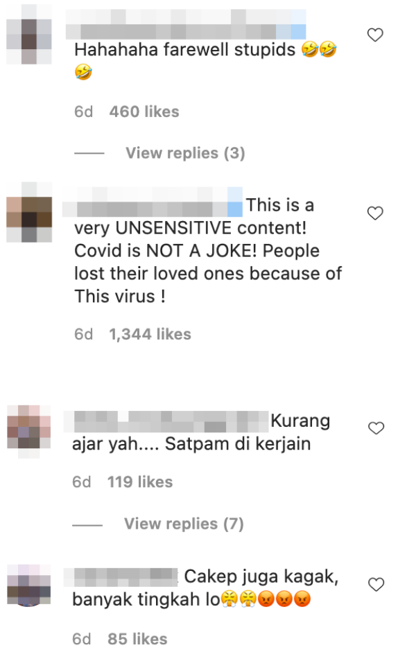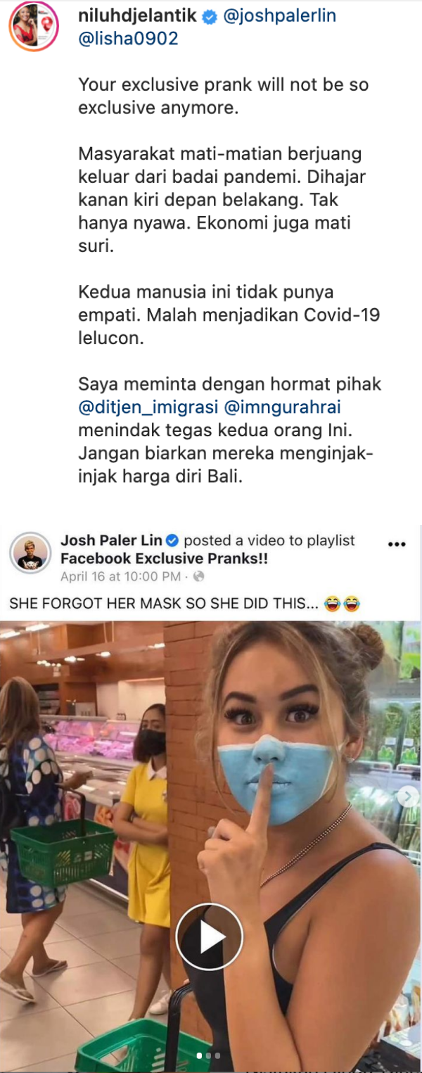 该视频一经传出立刻引起了广大网民的讨伐,林启晨只好迅速把视频删除掉,但仍被印尼知名时尚设计师Niluh Djelantik备份上传,更是发文痛批两人不顾防疫开此玩笑。网民们纷纷留言指责:“再见了愚蠢的家伙们”、“疫情不是玩笑“、”缺德!这种人应该被驱逐、”丢脸丢到国外“。