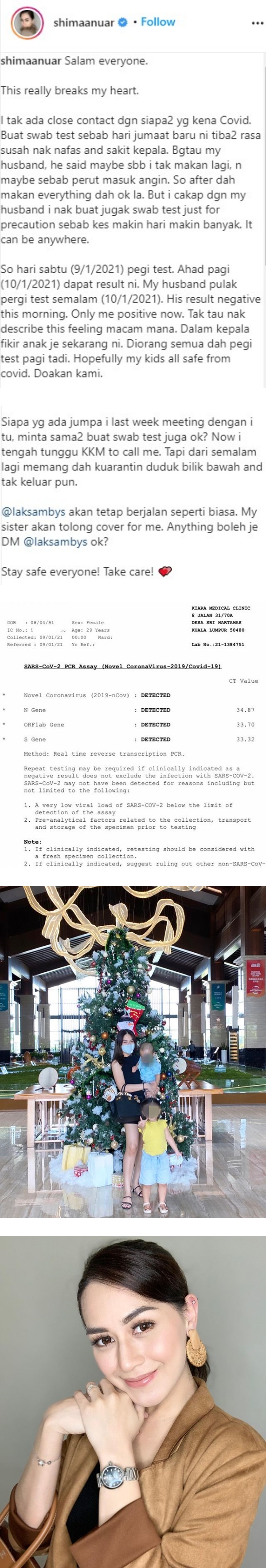 Shima Anuar在帖文中提到,自己不曾和任何新冠肺炎患者接触,但在上周五开始,她突然觉得呼吸困难、头痛,在老公的建议之下,她接受了新冠肺炎检测。