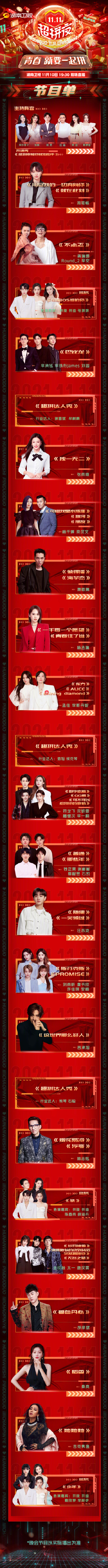 开场时间比较早的是“双11超拼夜”,这场晚会邀请了许多参加过选秀节目的艺人出席,像是THE9小分队刘雨昕、虞书欣、许佳琪和安崎,《披荆斩棘的哥哥》言承旭、林志炫、李承铉、James李铢衔、刘迦、梁汉文等,《乘风破浪的姐姐》张雨绮也将带来演出。