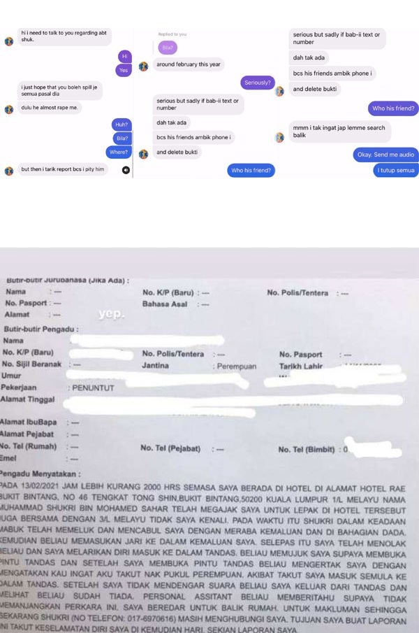 Fara贴出该女子的报案书,里面显示一名为Mohammad Shukri bin Mohamed Sahar(与Shuk原名相同)的男子,在喝醉酒后曾用手触碰女子的胸部和下体,幸好她极力反抗并成功躲进厕所里。