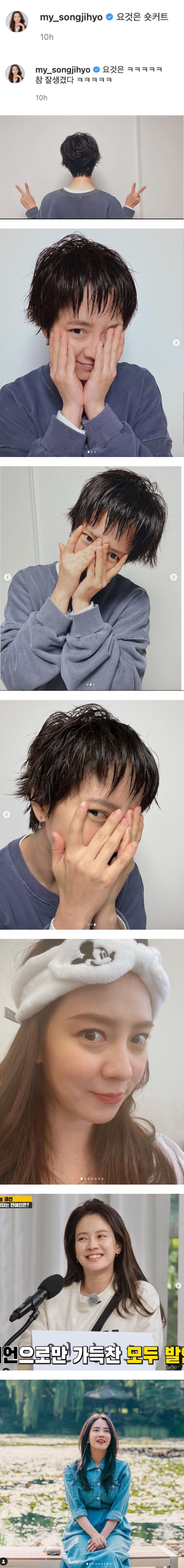 13日,宋智孝突然改变了自己的造型,先是在Instagram上贴出一张背影照,并写下“这个是Short cut”,之后再发文写道:“这个是...有点帅气”,照片中可见她害羞的遮住脸庞,头发竟然短到像是男生的“耳上激短发”,突破出道20年来最短的长度。