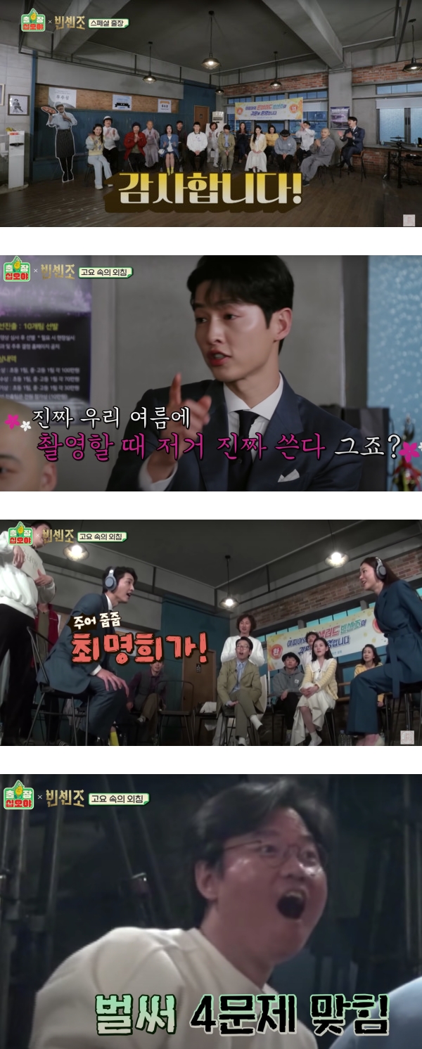 据悉,罗PD 带领了《Vincenzo》的演员们齐聚一堂,并进行了接龙游戏、心传心游戏及猜嘴形的“无声呐喊”游戏。宋仲基带领的《Vincenzo》组表现优异,他在与全汝彬组队时凭着过人的想象力及观察力在3分钟内快速答对5个单字,成功拿下奖品,仿佛梦回录制《Running Man》时期。