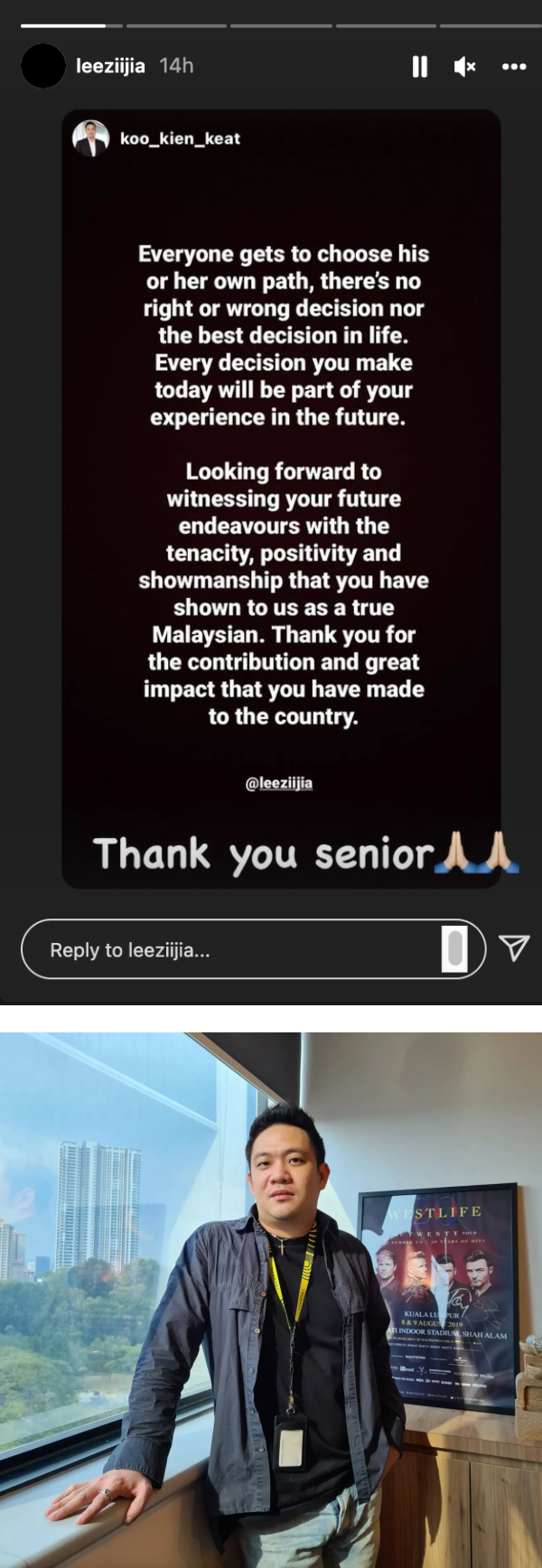 大马前知名男双球员“钻石组合”的古健杰也在社交平台上声援李梓嘉:“每个人都会选择自己的路,没有对与错,你做出的每个决定,都是你未来的经验”,“期待见证你的未来,为我们展示马来西亚人的坚韧不拔。谢谢你为这个国家做出的贡献和积极的影响!”