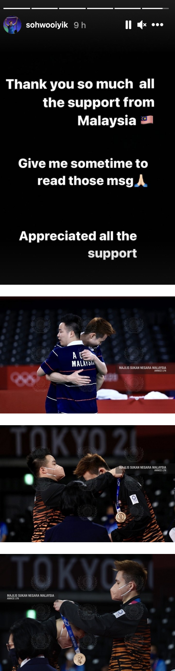 苏伟译最后也在Instagram Story 上表示:“非常感谢所有来自大马的支持,给我一些时间来读那些信息,真的感恩大家给予的鼓励。”
