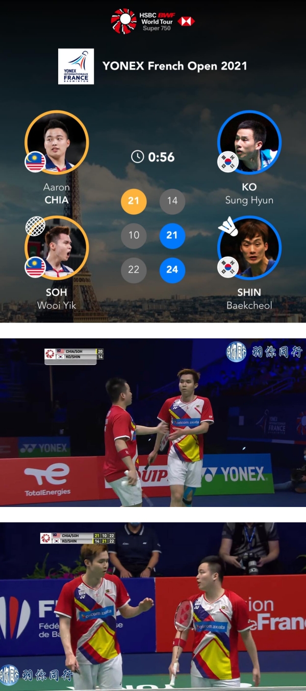 这场比赛非常激烈,虽然谢定峰、苏伟译最终以21-14 10-21 22-24的成绩战败,但大马在第三局时其实曾以16-11领先,并率先拿到20-19的赛点,怎料被韩国老将逆转了比分,非常可惜。