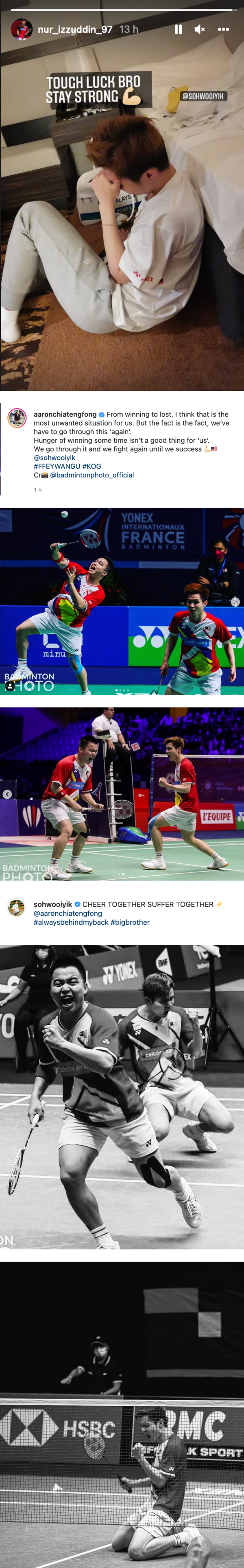大马男双Nur Izzuddin也在社交平台上贴出苏伟译哭泣的照片,留言:“运气不好,保持坚强兄弟”(Tough Luck Bro , Stay Strong) 。谢定峰赛后也留言:“我们必须要度过这个坎,才能成功”。