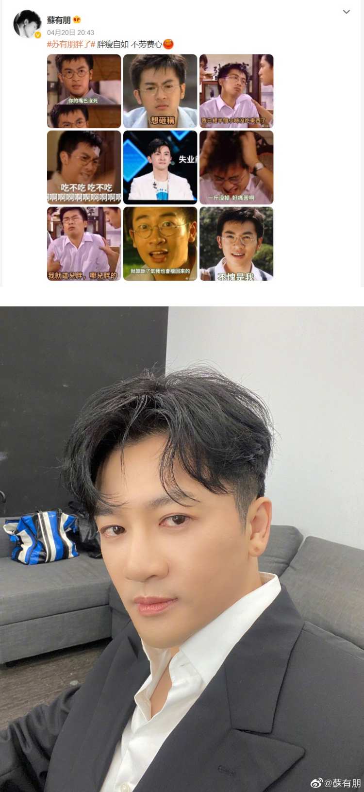 对此,苏有朋昨晚(20日)在微博发文,写道:“胖瘦自如,不劳费心”,并附上9张他当年饰演的“杜飞”的表情包,还在表情包写上“吃不吃,吃不吃,啊啊啊”、“一斤没掉,好痛苦啊”、“我就这儿胖,哪儿胖的”、“就算断了气我也会瘦回来的”,相当搞笑,高情商回应被吐槽“胖”的议论声。