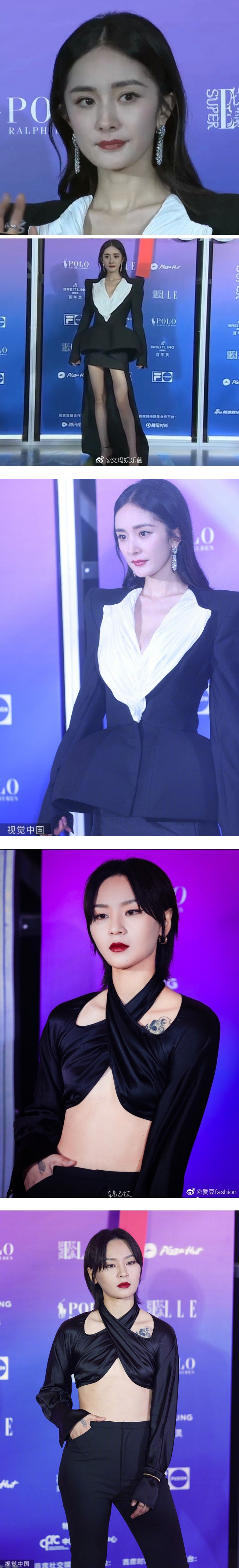 其中,杨幂身穿一袭黑白拼色西装长裙,气场非常强大,绝对是当晚最惊艳的红毯造型。周笔畅以禁欲感的抹胸造型登场,上半身只有两条布遮挡胸部,大方露出平坦腰部。