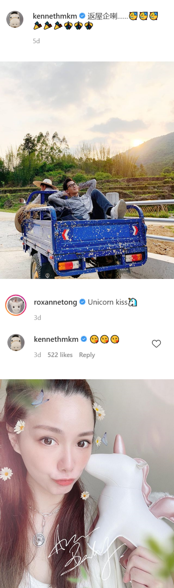 打从马国明透露完成了《白色强人2》拍摄,准备回港的消息后,圈内好友、网友都留言恭喜,他终于可以和女友汤洛雯重聚了。汤洛雯也在Instagram上贴出一张被独角兽公仔亲脸的照片,马国明贴了三个亲嘴的emoji回应高调放闪。