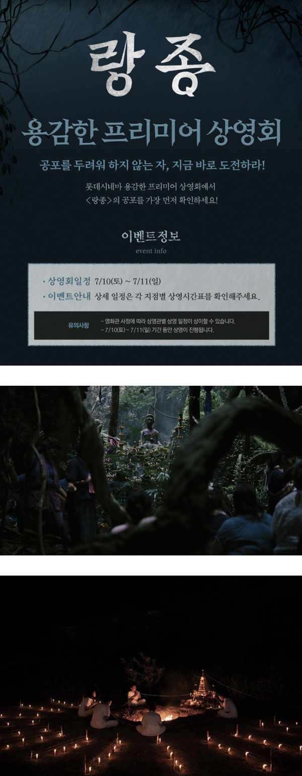由于电影的预告释出后,惊悚骇人的氛围让不少观众背肌发凉,韩国影院特别推出了“胆小鬼专场”,不只在LED 影厅特地开灯给胆小鬼们观赏这部电影,更会赠送“耳塞”给害怕的观众,创意的方法让不少观众兴致勃勃。