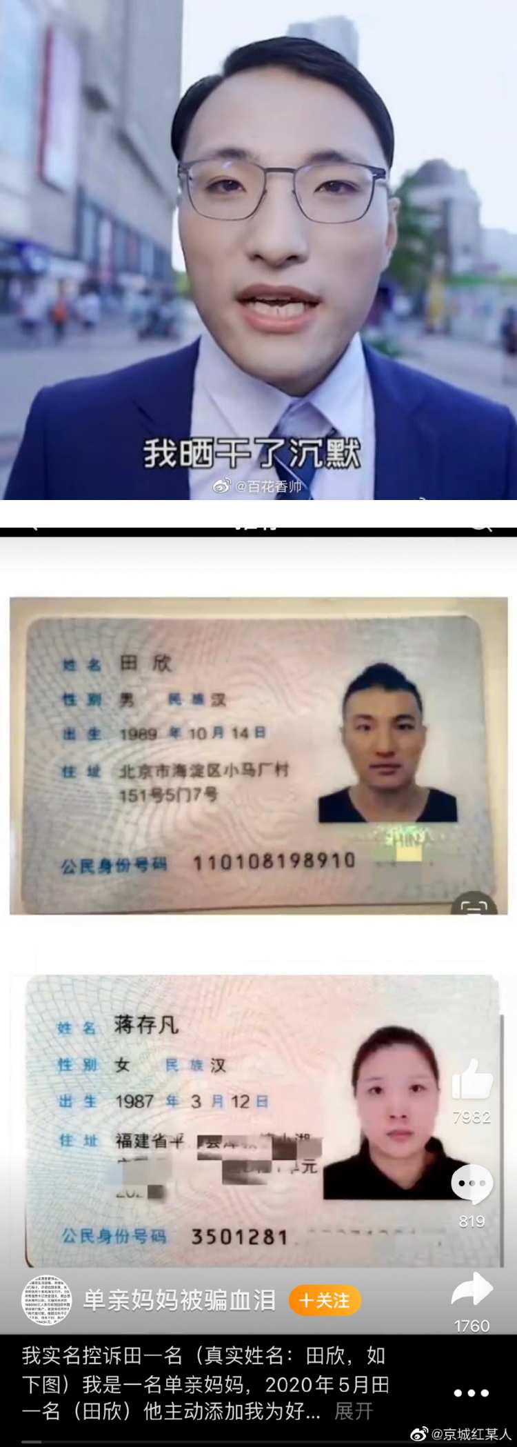 一名自称是单亲妈妈的网友昨天(13日)发文,称田一名在2020年5月主动加她为好友,从此便每天都对她嘘寒问暖,并多次约她出去聚会,哄骗她代买奢侈品、名牌衣等。