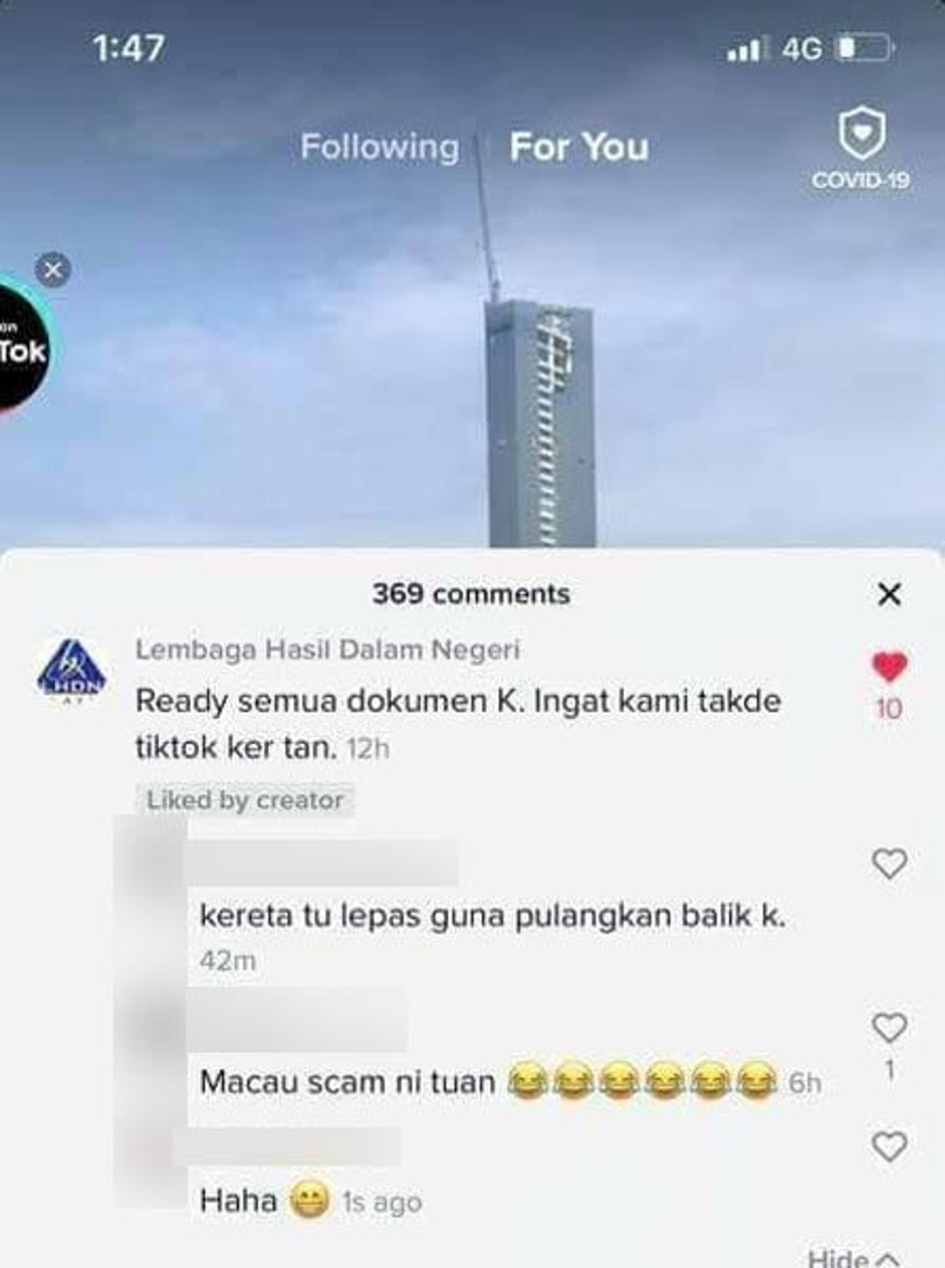 一名大马抖音网红在TikTok晒出豪华名车Range Rover,结果引来税收局头像的账号留言,引起热烈讨论并爆红!