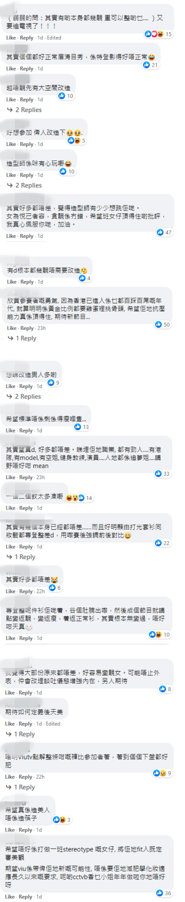 但大部分网友认为,这些女孩其实很勇敢:“其实个个都好正常眉目清秀,是特地拍得很不正常”、“其实好多都不差”、“女为悦己者容,爱美没有错,希望这班女孩顶得住批评”、“希望不会只剩下瘦的人”、“期待如何定义后天美”、“希望真的是造美人,不是造筷子”。