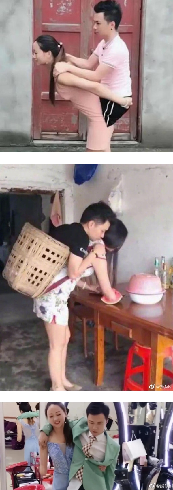 老公小波因为失去双腿没办法出外工作,于是妻子阿娇就让老公坐在竹篮裡,背着老公出门方便照顾。基本上老公的生活起居都是仰赖老婆阿娇打理。有网友发现他们的事迹后纷纷建议他们可以生活录成视频放上网,没料到却一炮而红,得到许多善心网友的援助。