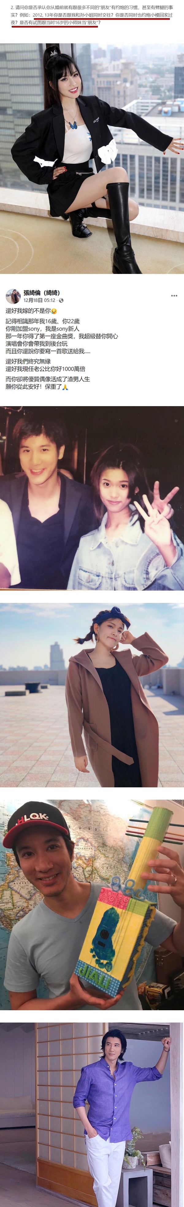 此前,“16岁的小师妹”张绮伦曾在Facebook发文证实,认识王力宏时对方得了金曲奖,开演唱会也带她到后台玩,但经历了这几天的接连爆料后,她庆幸自己嫁的不是王力宏。