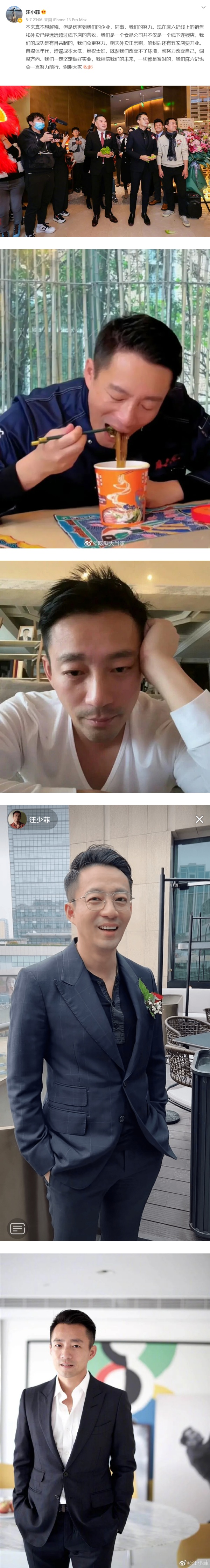 7日晚间,汪小菲在微博发文驳斥破产传闻,他指原本不想针对破产一事多加解释,但这伤害到了自己的企业和同事,“现在麻六记线上的销售和外卖已经远远超过线下店的营收,我们是一个食品公司并不仅是一个线下连锁店。我们的成功是有目共睹的,我们会更努力。”