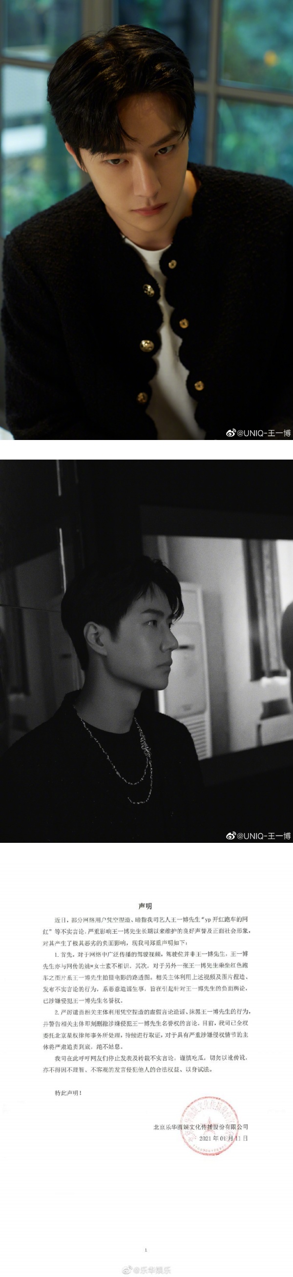 为此,王一博所属乐华娱乐发表声明澄清,王一博和网传的女网红素不相识,同时严厉谴责爆料者的行为,并呼吁网友停止转载不实言论。