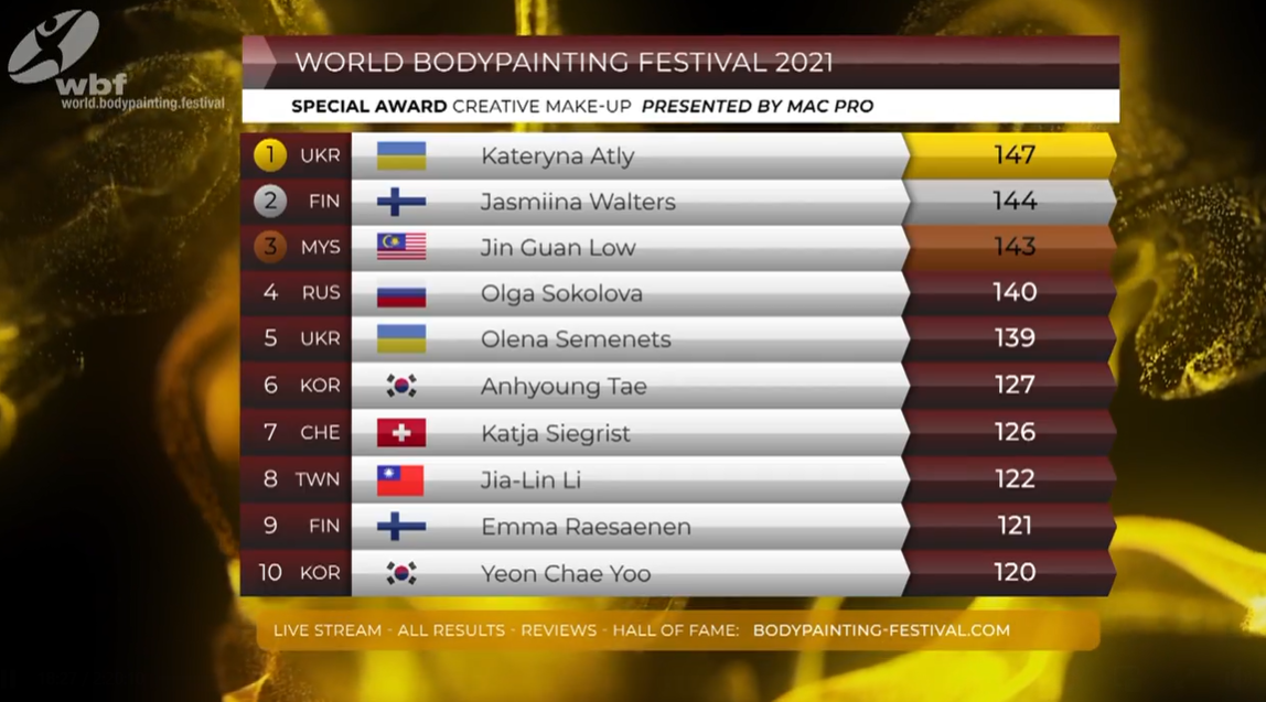 来自马来西亚留台大学生刘权錦近日获得奥地利世界人体彩绘大赛(The WBF 2021 )两项大奖,分别摘下第一和第三名!