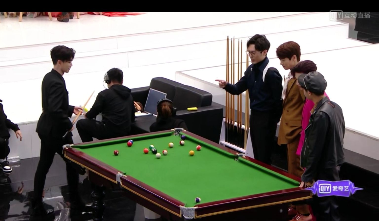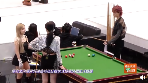 陆柯燃、安崎、赵小棠、白宇、小鬼王琳凯、黄明昊、魏大勋等人玩桌球。