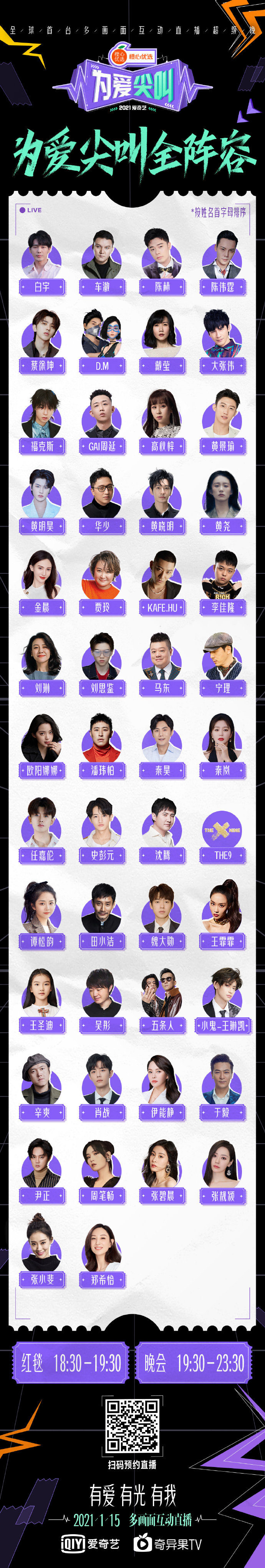 爱奇艺“尖叫之夜”晚会将在今晚(15日)举行,官方也终于在今天官宣完所有嘉宾阵容!