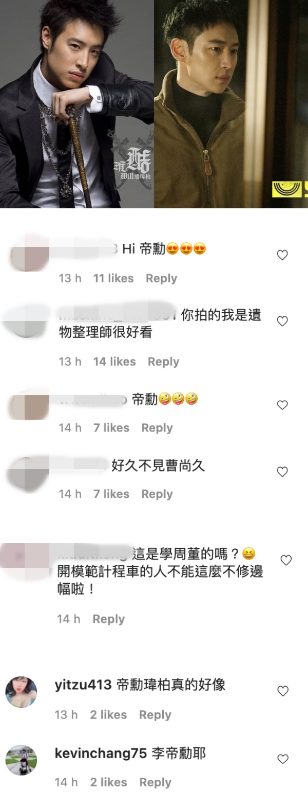 照片曝光后引起了王力宏留言认证:“ Bro !你果然说到做到” ,粉丝们也留言:“帅诶”、“谁是真正MVP”、“现在比较man”,但留言区最搞笑的是粉丝们特意调侃潘玮柏撞脸李帝勋的梗:“ Hi 帝勋”、“你拍的遗物整理师很好看”、“好久不见曹尚久”,“开模范计程车的人不能那么不修边幅啦” 等。