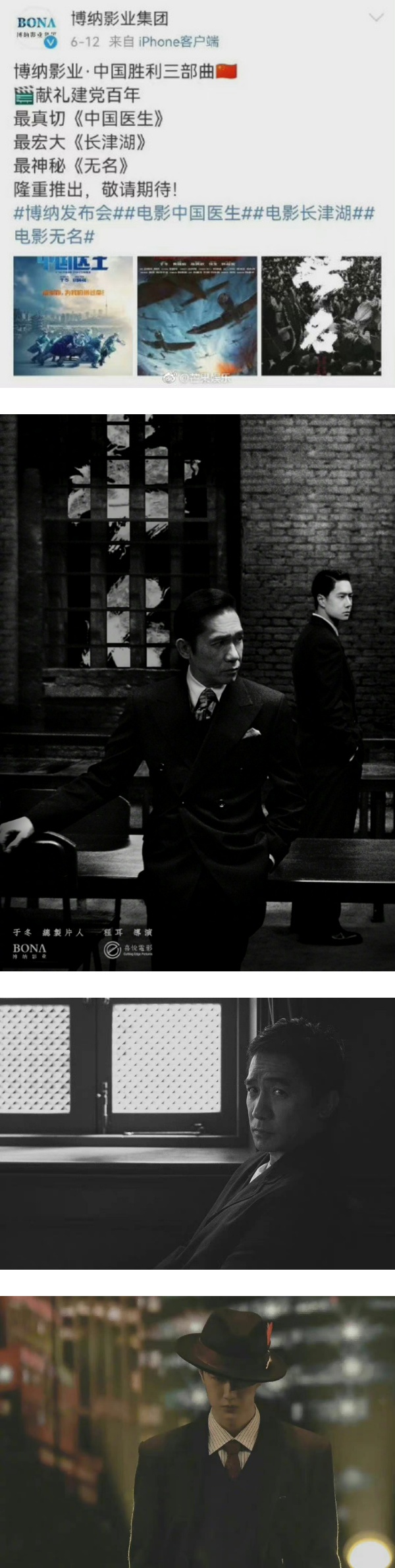 据悉,电影《无名》是继《中国医生》、《长津湖》之后,博纳影业集团打造“中国胜利三部曲”的第三部作品,影片聚焦波谲云诡的隐蔽战线,讲述了地下工作者们冒着生命危险送出情报,用生命与热血保卫祖国的故事。