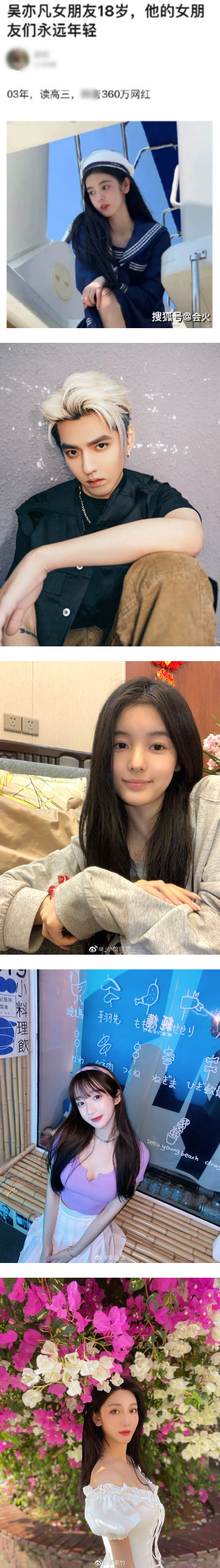 随着,都美竹的微博曝光后,网友发现她只有18岁,再翻回早前被曝和吴亦凡看电影的网美“小怡同学”她也年仅18岁,有八卦博主调侃说,“吴亦凡他的女朋友们永远年轻”。