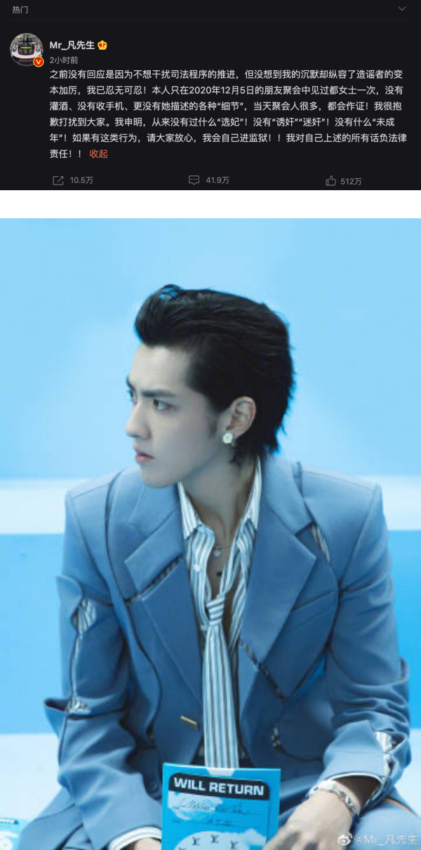 被指选妃、迷奸...吴亦凡终于回应了!“只见过都女士一次”