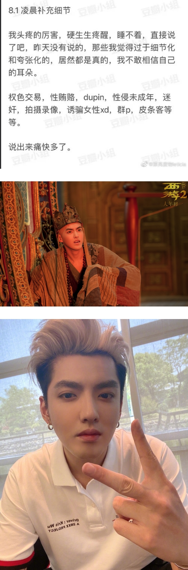 1日在微博上有网友更是爆出他被刑拘的原因,竟然是被确认与一名不到14岁(也有说法是13岁)的上海女粉丝发生性关系,甚至还有群交、吸毒、下药性侵未成年等9大罪行,令人咋舌!