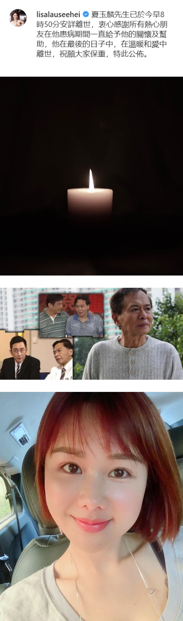 据报道,TVB演员刘思希过去曾和夏玉麟在《爱 · 回家之开心速递》中合作,7日刘思希在社交媒体上发布了一张白蜡烛照写下,“夏玉麟先生已于今早8时50分安详离世,衷心感谢所有热心朋友在他患病期间一直给予他的关怀及帮助,他在最后的日子中,在温暖和爱中离世,祝愿大家保重,特此公布”。