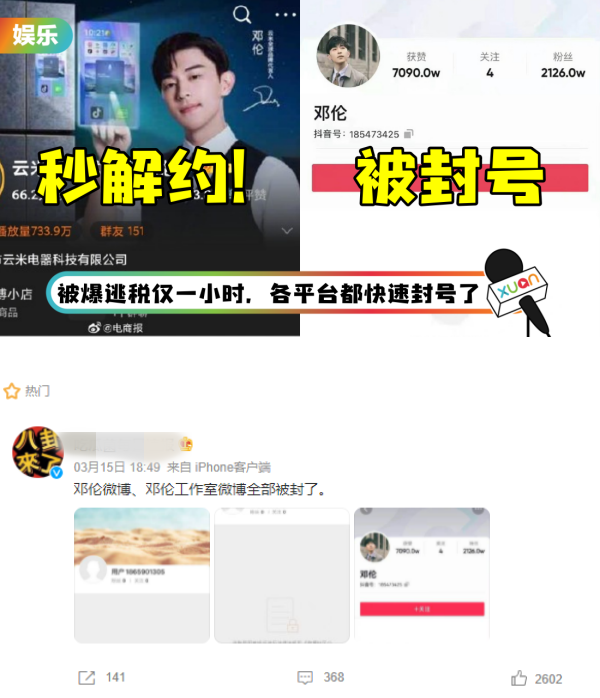 自从邓伦被爆出逃漏税后,他的微博、抖音等账号都以极快的速度被封号,部分网友甚至来不及存下美图,“邓伦”这个人物就在众目睽睽之下“蒸发”了。