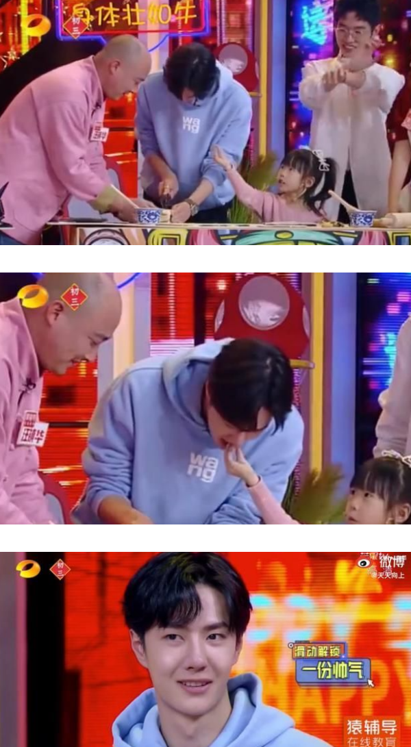 佑儿是王一博的迷妹,爸爸李行亮特意带她上节目。除了直盯着偶像、她还现场喂王一博吃糖;而面对小朋友的王一博也相当温柔,道谢并低头吃下她递的糖。